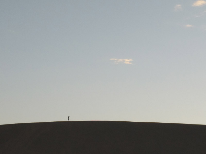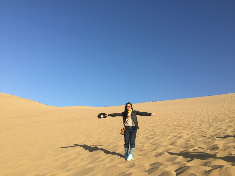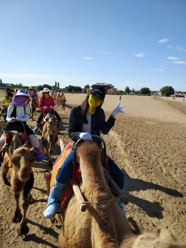 经过近一个小时的骆驼骑行,我们去到了著名的月牙泉。虽不知道月牙泉到底是人工的还是天然的,但是记忆中经常出现在读书时候的课本中。