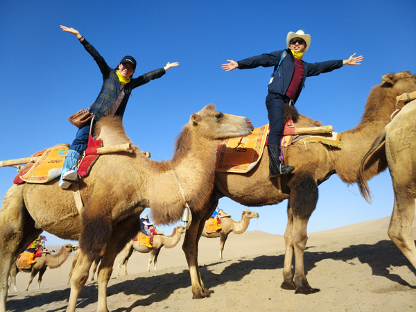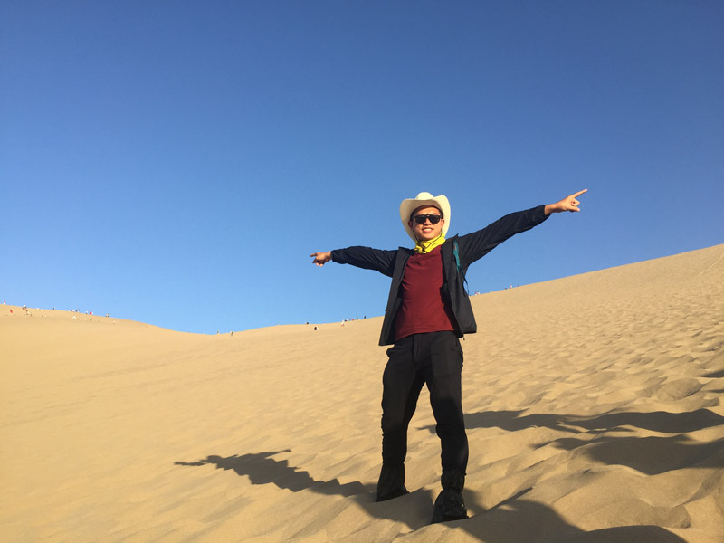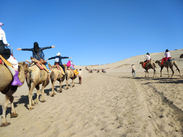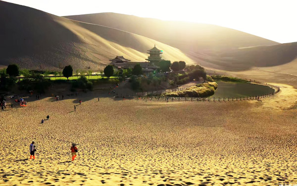 敦煌这个沙漠城市,并不是想象中的那样风尘仆仆,而是听干净利落的。我们首先去沙漠溜达一下,游览鸣沙山景区,看看著名的月牙泉。