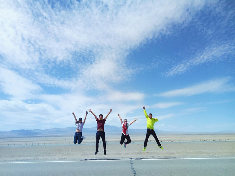 再到后来,就植被都没有了,只有沙子和石头了,廖无人烟,只能在公路上自娱自乐一下,嘿嘿!