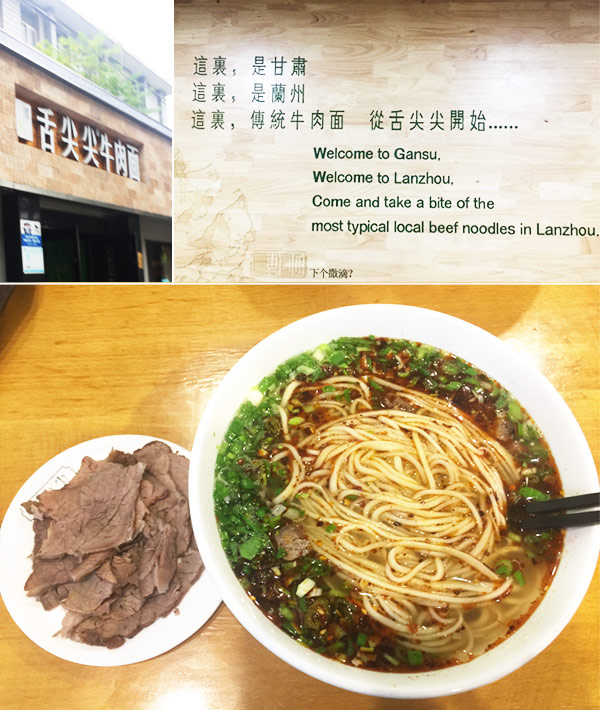 所以不管三七二十一,先来碗牛肉面先,兰州出名的牛肉面馆好多,我们就近选了“舌尖尖面馆”,果然是吃过最好吃的兰州拉面啊。