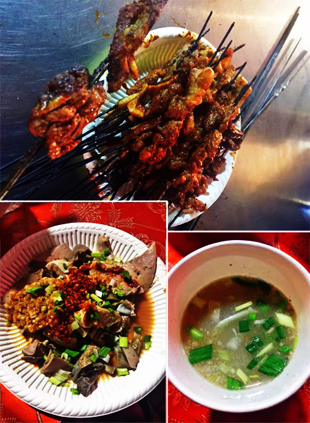 来到这里,还是得吃点羊的东西,就来个羊肉串、羊杂碎、羊汤,正宗!